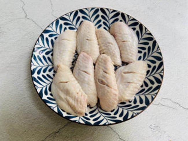 Cánh gà rửa sạch, để ráo nước. Dùng dao nhọn khứa nhẹ lên mặt cánh những đường chéo ngắn.